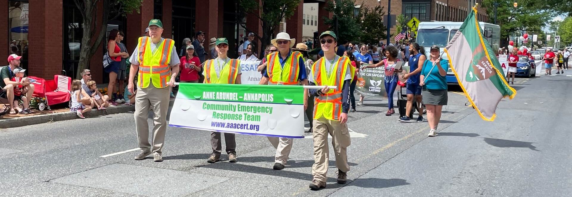 This year not only was Anne Arundel Annapolis Community Emergency Response Team (AAACERT) honored to be parade marshals for the City of Annapolis’ July 4th parade, but we also marched along with all the other great participants. This was the first parade where AAACERT had a group march within the parade.
